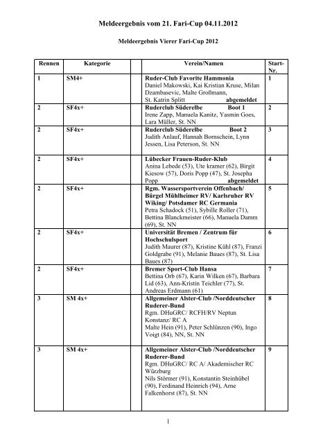 Melderergebnis 04 11 2012 Ruder Club Favorite Hamburg